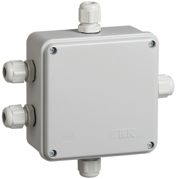 Коробка расп. для о/п 100х100х50мм IP55 (гермовводы PG9 5шт), КМ41330, IEK UKO10-100-100-050-K51-55