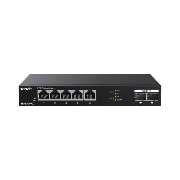 Коммутатор Tenda TEM2007X – это 5-портовый 2.5G Ethernet-коммутатор с двумя слотами 10G SFP+, разработанный компанией Tenda. Этот коммутатор обеспечивает высокоскоростную сеть для работы с компьютерами, NAS, телевизионными приставками, точками доступа Wi-Fi 6/7 и другими устройствами. TEM2007X — идеальное устройство доступа для высокоскоростного развертывания сетей в малых и средних предприятиях, офисах малого и домашнего офиса, на частных виллах или в беспроводных сетях.
