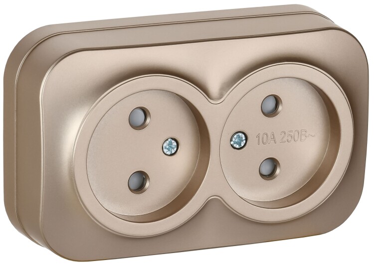 GLORY Розетка 2-местная для открытой установки без заземления с защитными шторками 10А РСш22-2-ХШм ш