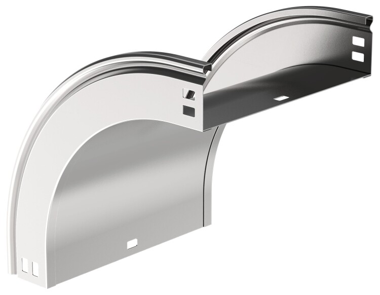 Поворот на 90° вертикальный внешний плавный предназначен для организации вертикального внешнего поворота кабельной трассы на 90°. Крышка аксессуара в комплект не входит. Аксессуар изготовлен из стали горячего цинкования методом Сендзимира (защитный слой цинка не менее 10 мкм).