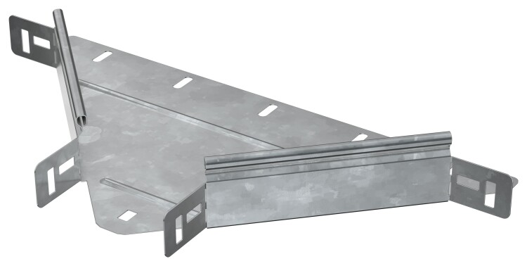 Отвод Т-образный горизонтальный предназначен для организации Т-образного или X-образного отвода кабельной трассы в горизонтальной плоскости. Стыковка аксессуара с лотком осуществляется за счёт телескопического соединителя. Подходит для всех типов листовых лотков серии ESCA. Крышка на аксессуар заказывается отдельно. Аксессуар изготовлен из стали оцинкованной методом горячего погружения (защитный слой цинка не менее 55 мкм).