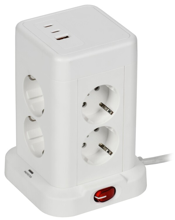 Бытовые удлинители DOMINIC IEK с функцией сетевого фильтра обеспечивают надежную защиту подключенных устройств и максимальный комфорт в эксплуатации. Модель с быстрой зарядкой позволяет одновременно питать бытовую технику и быстро заряжать гаджеты через порты USB-A и USB-C.