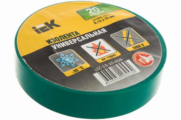 Изолента 0,13х15мм, 20м, зеленая, IEK UIZ-13-10-K06