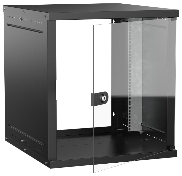 Шкаф настенный 19" 12U 600х650мм стеклянная дверь черный GENERICA