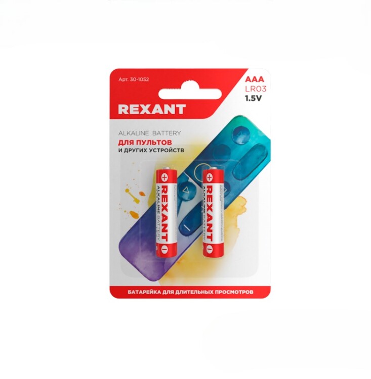 Алкалиновые батарейки AAA/LR03 REXANT 2 шт. в блистерной упаковке. Характеристики: Номинальное напряжение: 1,5 В Тип батарейки: Щелочной Типоразмер: ААА/ LR03 Алкалиновые (щелочные) батарейки, наиболее распространенный тип батареек. Для выработки электричества в них используется щелочной электролит. Данный тип батареек работает в несколько раз дольше обычных солевых, не протекает, лучше переносит низкие температуры и имеет более высокий срок хранения. Применяются в самом широком спектре электробытовых устройств, инструментах, освещении, игрушках и т. д.