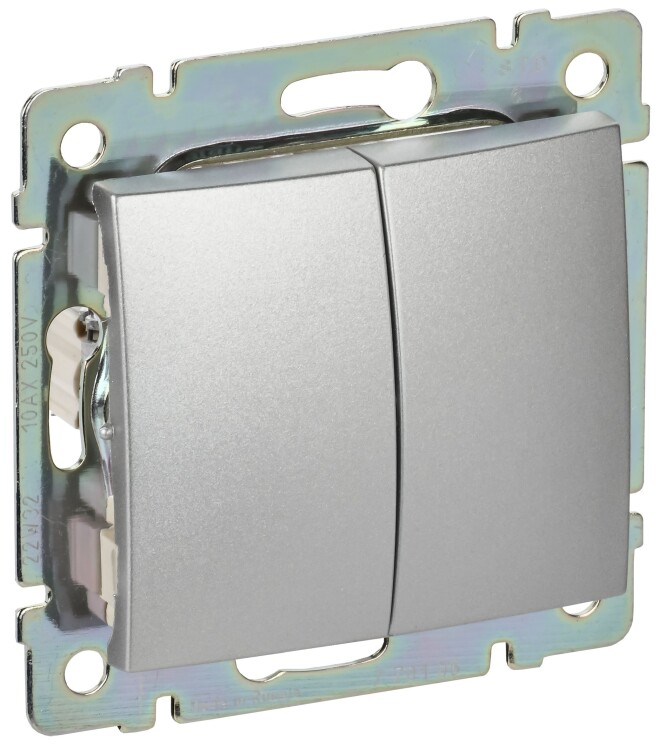 Переключатель двухклавишный VALENA для скрытого монтажа, номинальный ток 10 А, предназначен для управления двумя нагрузками с одного или с двух мест.