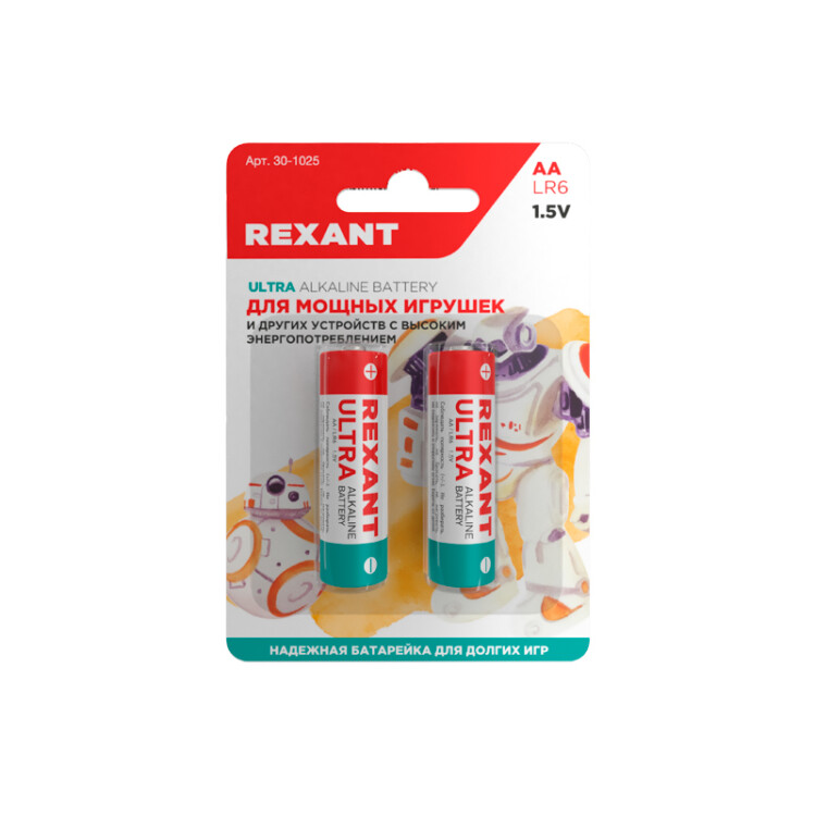 Алкалиновые батарейки REXANT серии «Ультра» имеют более высокую емкость, чем обычные щелочные, что делает их наиболее применимыми в устройствах с высоким энергопотреблением. Также эти батарейки могут применяться в устройствах с обычным энергопотреблением, работая при этом гораздо дольше, чем обычные алкалиновые батарейки. Алкалиновые (щелочные) батарейки, наиболее распространенный тип батареек. Для выработки электричества в них используется щелочной электролит. Данный тип батареек работает в несколько раз дольше обычных солевых, не протекает, лучше переносит низкие температуры и имеет более высокий срок хранения. Применяются в самом широком спектре электробытовых устройств, инструментах, освещении, игрушках и т. д Характеристики: • Тип батарейки: Щелочной • Типоразмер: АА/ LR06