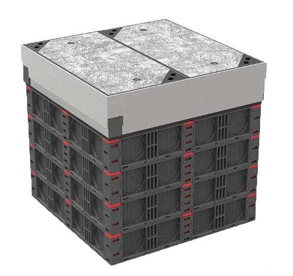 Модульный колодец связи МКС 300 — готовое решение для городской инфраструктуры. Варианты поставки: - для проезжей части — крышка класса нагрузки D400 - для пешеходных зон — крышка D125 для улиц и площадей — декоративное наполнение. Без необходимости в опорной плите, люке с обечайкой и краном — экономия времени и затрат. Преимущества: - выдерживает нагрузку 60 тонн - сборка вручную на объекте - компактный, подходит для уже проложенных кабелей - модульная конструкция по высоте и ширине - много входных отверстий для кабелей и микротрубок - декоративные крышки, гармонирующие с окружением - замок для запирания крышек