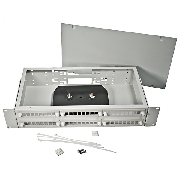 Кросс ШКО-С-2U-32/48-SC применяется для защиты сварных соединений, соединительных проводов и соответствующей аппаратуры в оптоволоконных линиях связи. Корпус изделия – металлическая коробка, которая с помощью специальных кронштейнов крепится в телекоммуникационные 19’’ стойки и шкафы. В корпусе предустановлены кабельные крепежи, лотки для укладываемого волокна и сплайс-кассета. В обычную комплектацию кросса входят съемные стяжки оборудования адаптеров, стяжки, средства для маркировки кабеля, схема пересечения волокон и набор для крепления в телекоммуникационную стойку.