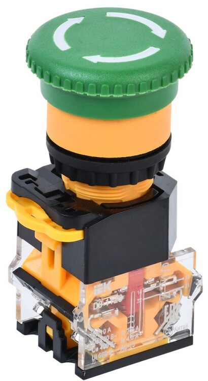 Кнопка D8-11ZS "Грибок" d=22мм 1NO+1NC поворотная с фиксацией зеленая IEK