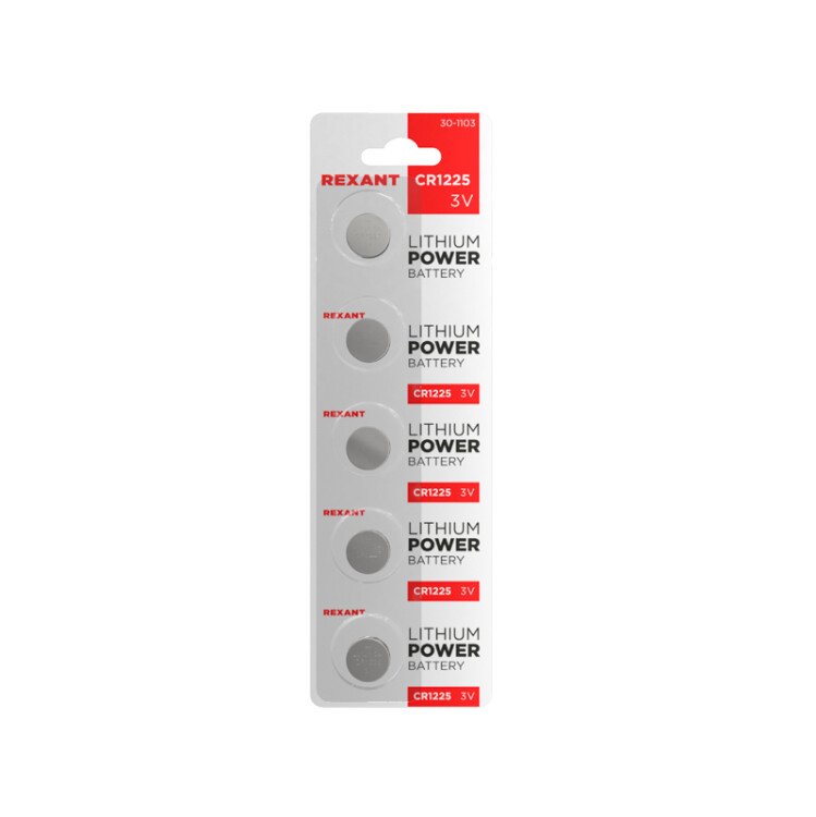 Батарейки литиевые CR1225, 3V, 48 mAh, уп.5шт., REXANT 30-1103