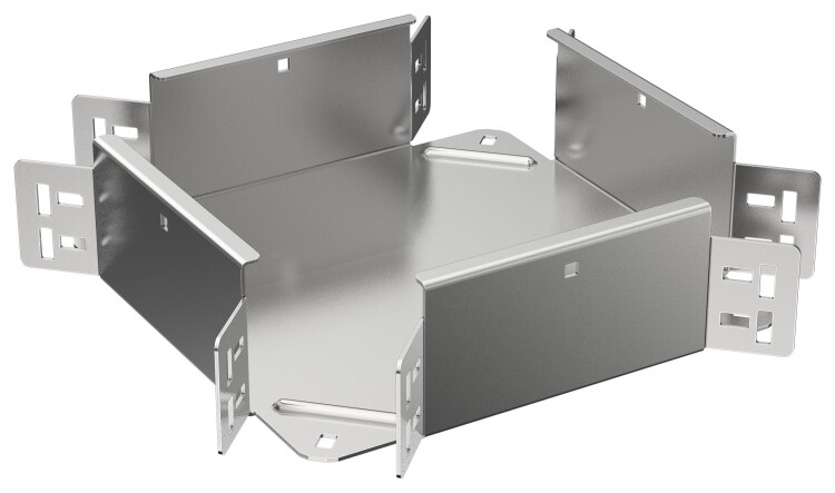 Крестовина предназначена для организации X-образного разветвления кабельной трассы в горизонтальной плоскости. Стыковка аксессуара с лотком осуществляется за счёт телескопического соединителя. Подходит для всех типов листовых лотков серии ESCA. Крышка на аксессуар заказывается отдельно. Аксессуар изготовлен из стали оцинкованной методом Сендзимира (защитный слой цинка не менее 5-10 мкм).