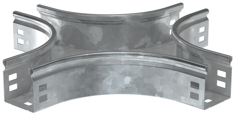 Крестовина плавная предназначена для организации X-образного ответвления кабельной трассы. Крышка аксессуара в комплект не входит. Аксессуар изготовлен из стали с цинковым покрытием, нанесенным погружением изделий в расплав цинка (защитный слой цинка не менее 55 мкм).