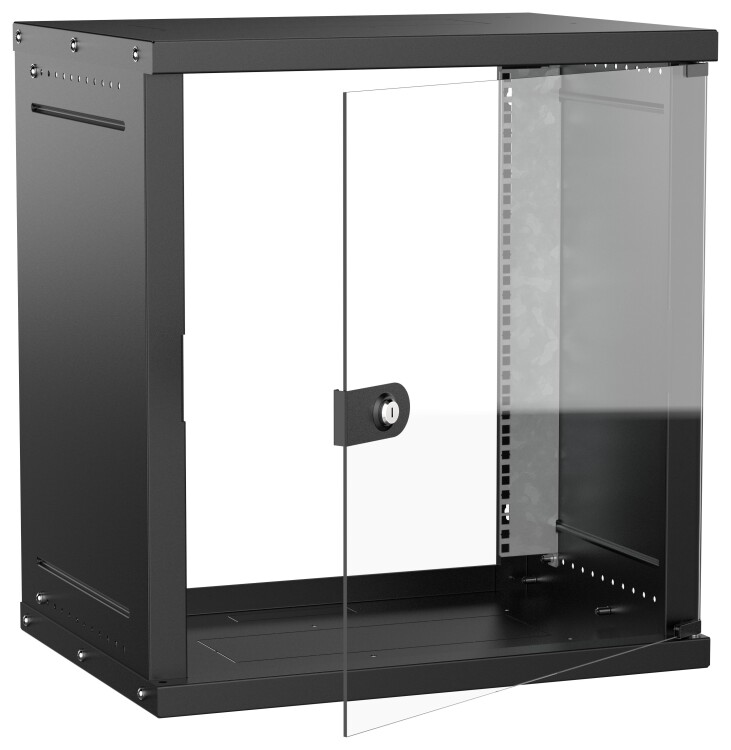 Шкаф настенный 19" 12U 600х450мм стеклянная дверь черный GENERICA