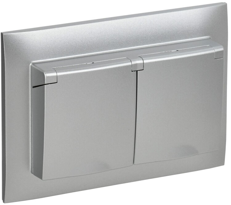 SKANDY Розетка 2-местная и крышкой 16А в сборе IP44 SK-R12S серебряный IEK