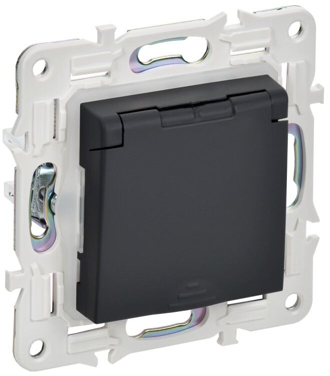 SKANDY Розетка 1-местная с заземлением с защитными шторками и крышкой 16А IP44 SK-R11G графит IEK