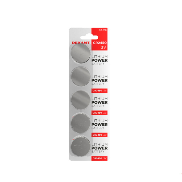 Батарейка REXANT CR2450 предназначена для использования в фотоаппаратах, электронике, системах безопасности (сигнализациях). Характеристики: Тип батареи: литиевая Номинальное напряжение: 3 В Упаковка: 5 шт. на блистерной карточке