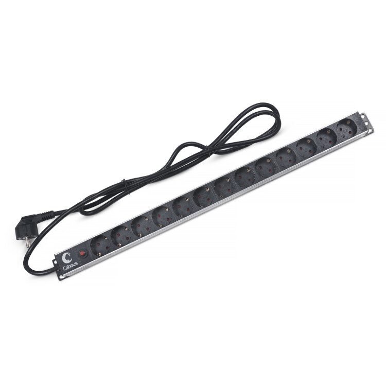 Блок электрических розеток предназначен для распределения электропитания между активным оборудованием в телекоммуникационных шкафах и стойках с номинальным напряжением 220В и суммарным током нагрузки не более 16А. Блок выполнен в виде 1U корпуса подразумевающего вертикальную установку на направляющие 19” в шкафы или стойки. Кронштейны, для вертикального крепления на направляющие, входят в комплект поставки. Блок состоит из электрических розеток, соединённых шинами питания, изготовленных из латуни марки Л63Т сечением 6мм² каждая. Блок розеток имеет шнур питания с вилкой «Schuko» 2К+3 длиной 2м и фильтр импульсных помех. Корпус изготовлен из алюминия. Использование металлического корпуса обеспечивает дополнительную защиту от повреждения при случайных ударах, более высокую термостойкость и дополнительную экранировку от электрических помех.