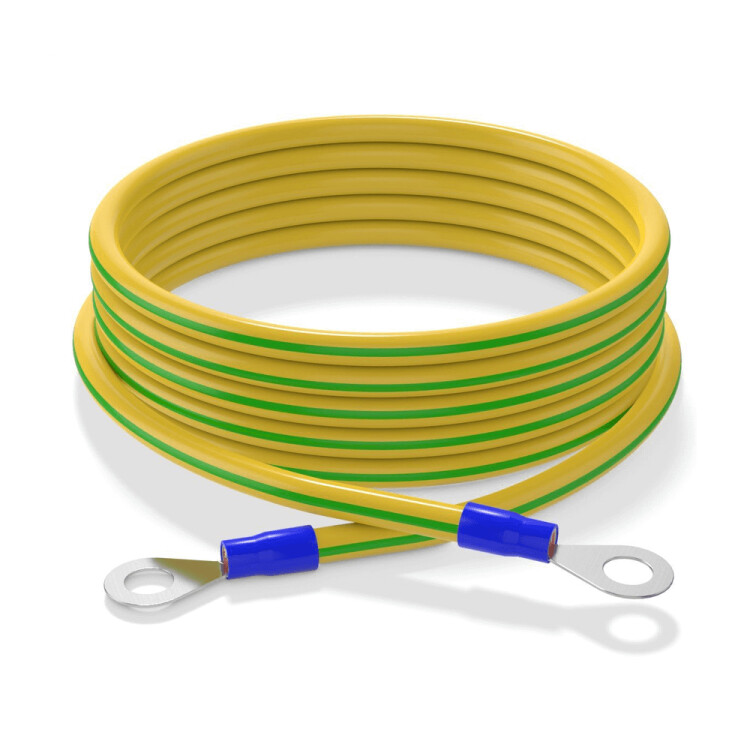 Многожильный (гибкий) кабель оболочка ПВХ желто-зеленого цвета, сечением 2,5 мм². Оконцован с двух сторон наконечниками кабельными изолированными НКИ 5.5-6 синего цвета. Предназначен для использования в контуре заземления и электрического соединения отрезков кабельных лотков, труб, металлических полос и т.д. между собой, а также корпусов оборудования в телекоммуникационных и электрических шкафах с заземляющим устройством. Применяется в системах заземления, а также для уравнивания потенциалов между металлическими деталями различного оборудования.