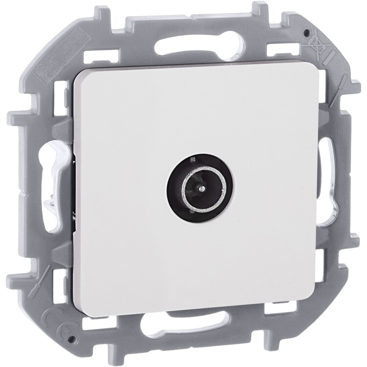 Розетка телевизионная для скрытого монтажа Inspiria, оконечная для схемы "шлейф", затухание 10дБ, 4-862МГц, цвет "Белый". Предназначена для подключения нескольких ТВ приемников к антенне, используется в схеме "шлейф" и устанавливается в конце линии.