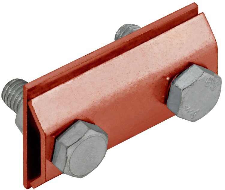 Зажим соединительный сквозной пруток-пруток предназначен для соединения круглых проводников. Способен зажимать проводники как соосно, так и параллельно друг другу. Состоит из двух пластин и зажимных болтов с гайками. Материал корпуса - медь.