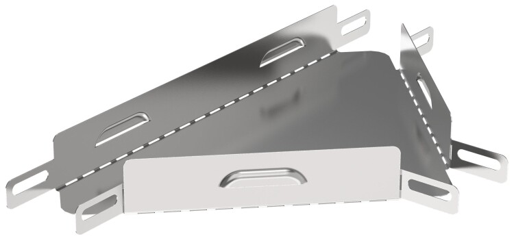 Разветвитель Т-образный горизонтальный предназначен для организации Т-образного ответвления кабельной трассы в горизонтальной плоскости. Аксессуар поставляется в плоском виде, имеет направляющую перфорацию для сгиба и сборки изделия перед установкой. Стыковка аксессуара с лотком осуществляется за счёт телескопического соединителя. Подходит для всех типов листовых лотков серии ESCA. Крышка на аксессуар заказывается отдельно. Аксессуар изготовлен из стали оцинкованной методом Сендзимира (защитный слой цинка не менее 5-10 мкм).