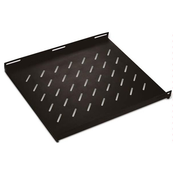 Полка FS05-800PI предназначена для крепления в телекоммуникационном 19’’ шкафу. На ней размещают оборудование, не имеющее крепления на 19’’ направляющие, характерные для таких шкафов.