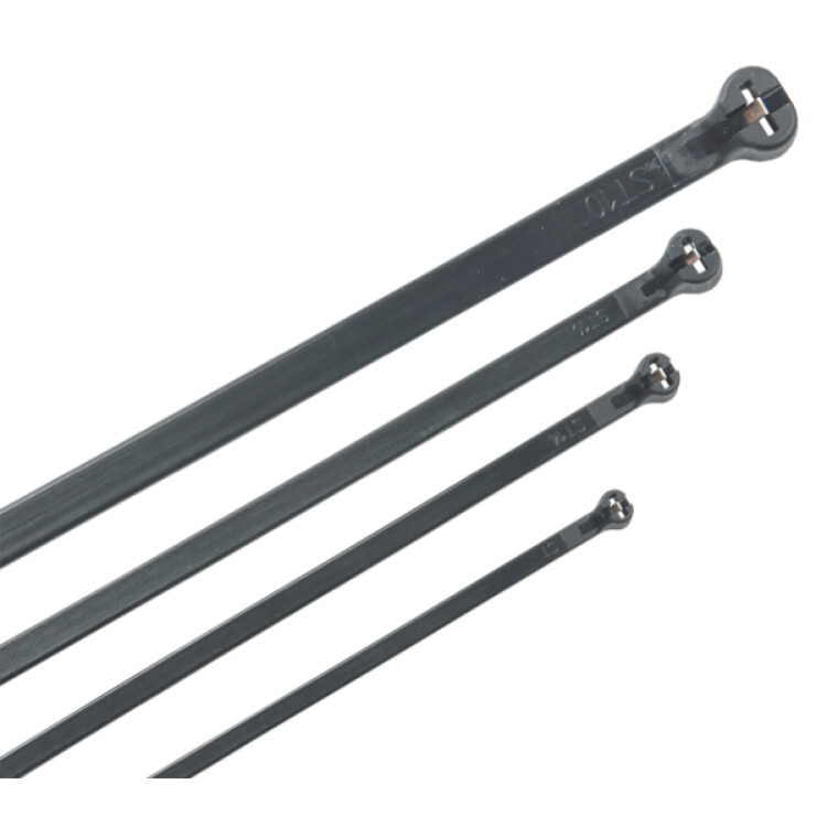 Модернизированный хомут-стяжка с усиленной замковой частью предназначен для бандажирования в пучок крепления проводов или кабелей при проведении электромонтажных и строительных работ.