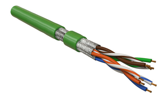 Hyperline UFTP4-C6-P26-IN-LSZH-GN-500 (500 м) Кабель витая пара, экранированный U/FTP, без общего экрана, каждая пара в фольге, категория 6, 4 пары 26 AWG, 4х2х0,48 мм, многопроволочные жилы, LSZH, нг(А)-HF, внутренний -40°C – +75°C, зеленый