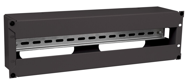 Электрораспределительная панель с DIN-рейкой используется для установки в 19" шкафах и стойках модульного оборудования и подведения к ним электрических кабелей с последующим распределением рабочего напряжения на потребителей. Максимально возможное количество модулей 18 мм (1P), устанавливаемых в панель - 21 шт. Панель имеет высоту 3U, состоит из корпуса, лицевой съемной крышки и непосредственно DIN-рейки. На обратной стороне предусмотрены окна для ввода кабелей в панель. Электрораспределительная панель устанавливается на вертикальные монтажные профили с помощью крепежа винт-шайба-гайка. На корпусе предусмотрена возможность организации заземления изделия.