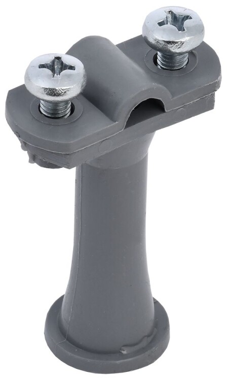 Держатель проводника круглого 6 – 10 мм h = 59 мм пластик серый товарного знака IEK используется для крепления круглых элементов молниезащитной сетки на фасаде здания. Держатель позволяет закрепить проводник на расстоянии 59 мм от фасада. В основании держателя имеется резьба М8.