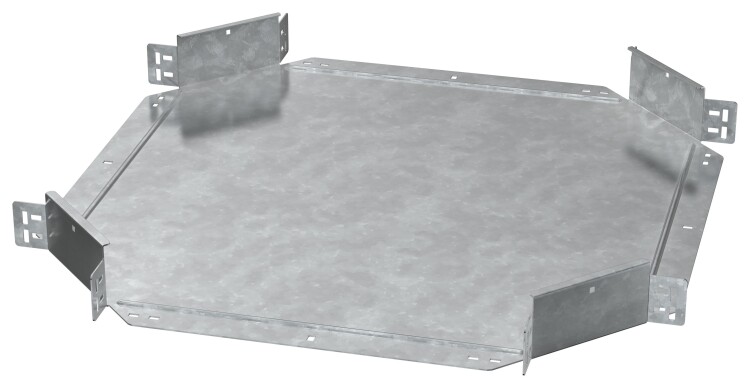 Крестовина предназначен для организации X-образного разветвления кабельной трассы в горизонтальной плоскости. Стыковка аксессуара с лотком осуществляется за счёт телескопического соединителя. Подходит для всех типов листовых лотков серии ESCA. Крышка на аксессуар заказывается отдельно. Аксессуар изготовлен из стали оцинкованной методом горячего погружения (защитный слой цинка не менее 55 мкм).