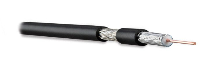 Hyperline COAX-RG6-CU-100 (100 м) Кабель коаксиальный RG-6, 75 Ом (ТВ, SAT, CATV), однопроволочная жила 18 AWG, 1.02 мм, медь, экран оплетка (48%) и фольга, внешний диаметр 6.9 мм, PVC, -20°C – +75°C, черный