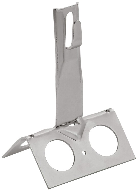 Держатель проводника круглого для конька с безболтовым зажимом широкий предназначен для закрепления прутка на коньке скатной кровли. Зажим проводника происходит путем загибания «язычка» держателя. На коньке крепится при помощи метизов. Материал корпуса - нержавеющая сталь.