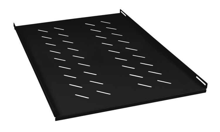 Усиленная стационарная полка четырехточечного крепления предназначена для установки в напольные шкафы Cabeus глубиной 1000мм. Используется для размещения технологического оборудования, не имеющего стандартного 19” крепления. Полка имеет перфорацию, позволяющую охлаждать технологическое оборудование. Максимально разрешенная нагрузка – 100 кг. Покрытие – порошковая ударопрочная краска, черная (RAL9004). Толщина стали составляет 2 мм. Установка стационарной полки производится путем крепления на боковые поверхности 19” направляющих с помощью стандартного крепежа – квадратных гаек, винтов М6 и пластиковых шайб.