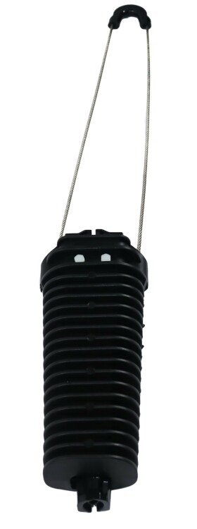 Зажим натяжной PA-3000 для самонесущего ADSS оптического кабеля, предназначен для крепления кабеля к опоре линии связи с помощью клиньев, которые предотвращают проскальзыванию наружной оболочки кабеля по всей длине трассы. Трос изготавливают из нержавеющей стали, а корпус выполнен из сплава алюминия, что предает зажиму достаточно высокую прочность натяжения (максимальное растягивающие усилие – 9 кН). Материал для клиньев изготавливают из прочного защищенного от ультрафиолетового излучения пластика. Проводимые температурные испытания выявили, что использования зажимов возможно при температурах от -60 до +50 °С с сохранением всех свойств. Помимо крепления оптического кабеля зажимы применяются для силового изолированного провода (СИП) с сечением жилы от 50-70 мм.