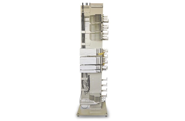 Решение ВОКС-ФП-СТ (волоконно-оптическая коммутационная система, фронтальный доступ, поворотные модули) выполнено на базе открытой стойки глубиной 600 мм, шириной 600 мм и высотой 2200 мм. В решении ВОКС-ФП-СТ выделены следующие функциональные зоны: зона ввода, разделки и фиксации ОК; зона монтажа и коммутации ОВ; зона выкладки и хранения запасов патчкордов. Зона ввода ОК организуется в верхней или нижней части стойки с использованием узлов ввода ВКР-3 и несущих для них. Зона монтажа и кросс-коммутации волокон монтируется на конструктиве стойки в передней части. Зона выкладки и хранения запаса соединительных шнуров расположена справа и сзади на конструктиве стойки, здесь же установлены органайзеры.