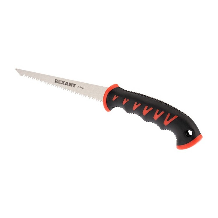 Ножовка по гипсокартону REXANT имеет узкое лезвие с зазубренной кромкой и используется для пиления гипсокартонных плит. Специальная двухгранная заточка зубьев обеспечивает легкий и быстрый распил, позволяет пилить заготовку как движением на себя, так и от себя, что обеспечивает комфорт при работе в труднодоступных местах. Полотно изготовлено из углеродистой прочной стали с твердостью 50–55 HRC. Эргономичная обрезиненная двухкомпонентная рукоятка удобно лежит в ладони и создает дополнительный комфорт при работе.