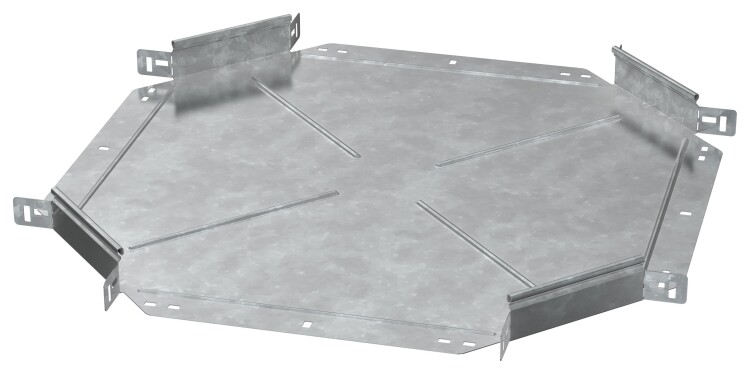 Крестовина предназначен для организации X-образного разветвления кабельной трассы в горизонтальной плоскости. Стыковка аксессуара с лотком осуществляется за счёт телескопического соединителя. Подходит для всех типов листовых лотков серии ESCA. Крышка на аксессуар заказывается отдельно. Аксессуар изготовлен из стали оцинкованной методом горячего погружения (защитный слой цинка не менее 55 мкм).
