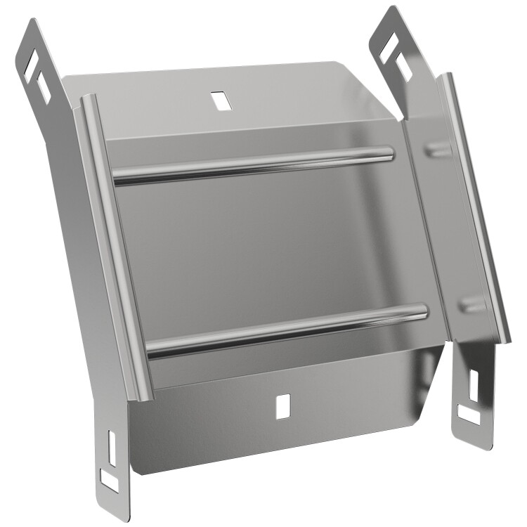 Поворот вертикальный внешний на 45° предназначен для организации поворота кабельной трассы в вертикальной плоскости. Стыковка аксессуара с лотком осуществляется за счёт телескопического соединителя. Подходит для всех типов листовых лотков серии ESCA. Крышка на аксессуар заказывается отдельно. Аксессуар изготовлен из стали оцинкованной методом Сендзимира (защитный слой цинка не менее 5-10 мкм).