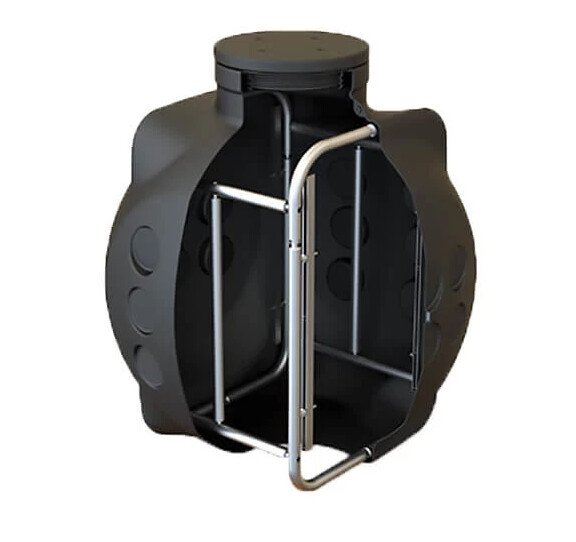 Колодец ККТ 2 с металлокаркасом выдерживает нагрузку 40 тонн и устанавливается на проезжей части с разгрузочной железобетонной плитой и тяжелым люком. Каркас сборный, включает 2 кабелегона, стойки KSC-RC-01 и U-образные скобы для крепления. Корпус шарообразный, из полиэтилена, герметичный, с резьбовой крышкой. Имеется 11-12 площадок для кабельных вводов, максимум 46. Вводы герметизируют адаптерами АГВ, сверля отверстия прямо в колодце, что обеспечивает надежную герметизацию. Установка: котлован должен быть минимум 1800x1800 мм и глубиной не менее 1200 мм, с песчано-цементной подушкой 150-200 мм. Засыпается песком с послойной утрамбовкой и поливом водой. Для закрепления в влажных грунтах используют бетонные плиты или блоки с ремнями грузоподъемностью 2000 кг. При укладке на дороге сверху укладывается железобетонная плита, а люки — по ГОСТу.