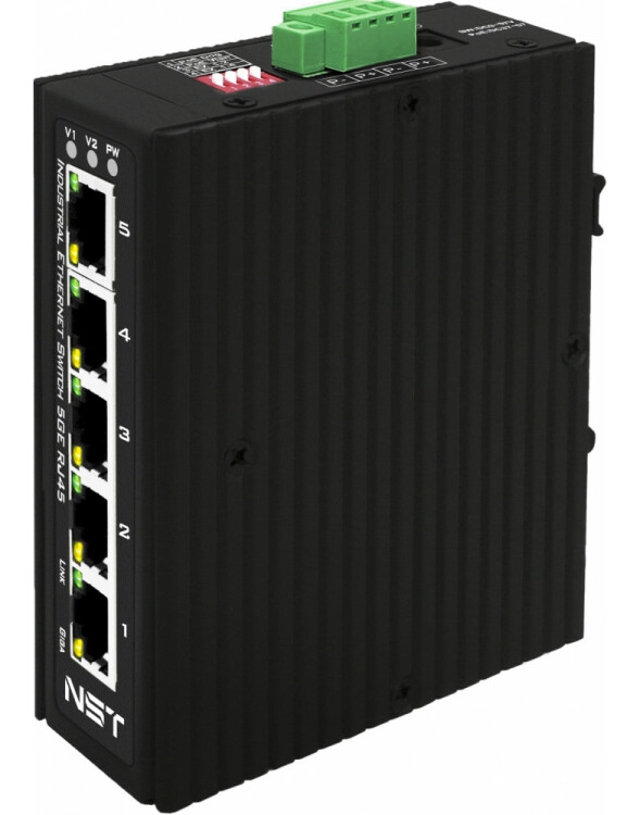 Промышленный коммутатор Gigabit Ethernet на 5GE RJ45 портов. Порты: 5 x GE (10/100/1000Base-T). Встроенная грозозащита 6кВ. Питание: 3 x входа DC9-57V(6W). БП в комплект НЕ входит. Монтаж на DIN-рейку или на стену (крепление в комплекте). Поддержка режима CCTV: Увеличение расстояния передачи данных до 250м, изоляция портов (VLAN). Размеры (ШхВхГ): 37х108х90мм. Вес: 0,47кг. Рабочая температура: -40…+80°С.