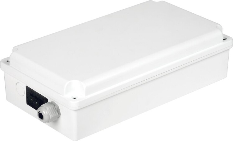 Универсальный блок аварийного питания предназначен для питания постоянным напряжением 220В светильников с драйвером различного типа и назначения, что позволяет преобразовать любой светильник в светильник аварийного назначения с полноценным резервным освещением в течении 1 часа работы от аккумулятора. Блок расположен в выносном влагозащищенном боксе со степенью защиты IP65. Максимальная мощность подключаемой нагрузки - 120Вт. К одному БАП может быть подключено несколько светильников.