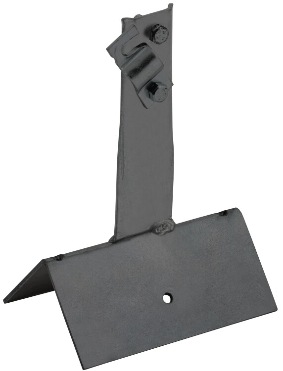 Держатель проводника круглого для конька с болтовым зажимом широкий предназначен для закрепления прутка на коньке скатной кровли. Держатель крепится к кровле при помощи метизов. Зажим проводника происходит при помощи болтового соединения. Материал корпуса - сталь с термодиффузионным цинковым покрытием.