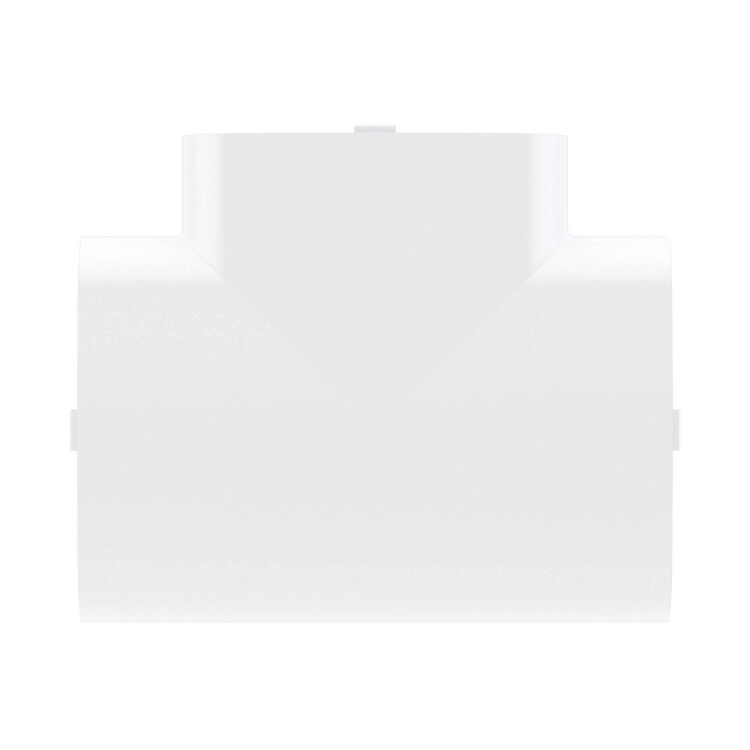 Тройник используется для маскировки мест Т-образных стыков. Аксессуар совместим с кабель-каналами 90х50 мм. Материал: накладка – АБС-пластик; база и разделители – ПП. Цвет - белый.