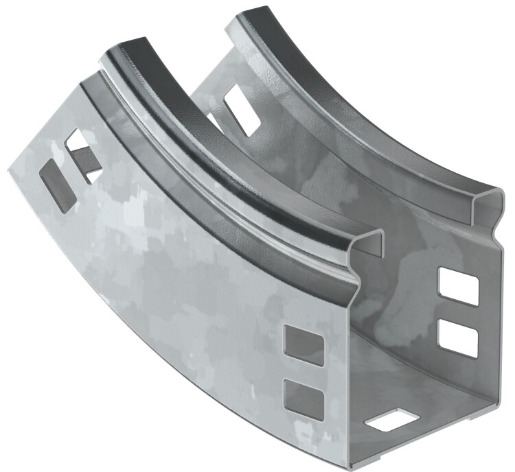 Поворот на 45° вертикальный внутренний плавный предназначен для организации вертикального внутреннего поворота кабельной трассы на 45°. Крышка аксессуара в комплект не входит. Аксессуар изготовлен из стали с цинковым покрытием, нанесенным погружением изделий в расплав цинка (защитный слой цинка не менее 55 мкм).