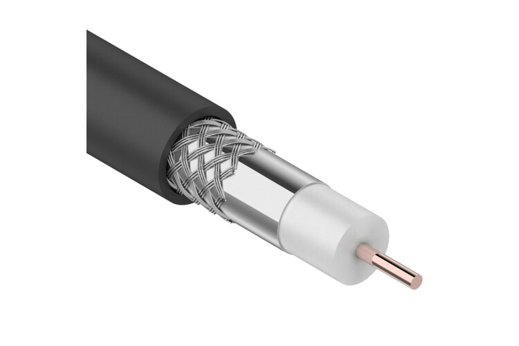 Кабель коаксиальный RG-6U (75 Ом) считается самым распространенным решением для подключения телевизионных систем. Обеспечивая передачу аналоговых сигналов, этот кабель применяется для прокладки, как внутри помещений, так и по открытому воздуху в составе распределительных ТВ-сетей. Коаксиальный кабель RG-6U (75 Ом) черный REXANT по структуре представляет собой два проводника – внутренний и внешний, расположенных соосно и разделенных изолирующим диэлектриком. Центральный проводник – однопроводная омедненная жила- окружен изоляцией из вспененного полиэтилена. Экран, наложенный на сердечник, имеет дополнительную алюминиевую оплетку из 48 нитей для обеспечения его электрической непрерывности. Сплошная внешняя оболочка изготовлена из полиэтилена и имеет черный цвет. Полиэтилен отлично защищает от влаги и ультрафиолета, что позволяет использовать кабель вне помещений на открытом воздухе. Номинальное волновое сопротивление данного кабеля составляет 75 Ом. Этот кабель имеет хорошее отношение механической прочности и
