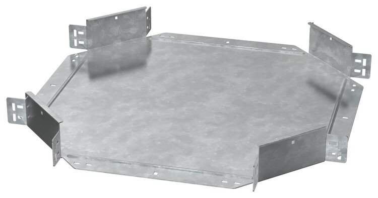 Крестовина предназначен для организации X-образного разветвления кабельной трассы в горизонтальной плоскости. Стыковка аксессуара с лотком осуществляется за счёт телескопического соединителя. Подходит для всех типов листовых лотков серии ESCA. Крышка на аксессуар заказывается отдельно. Аксессуар изготовлен из стали оцинкованной методом горячего погружения (защитный слой цинка не менее 55 мкм).