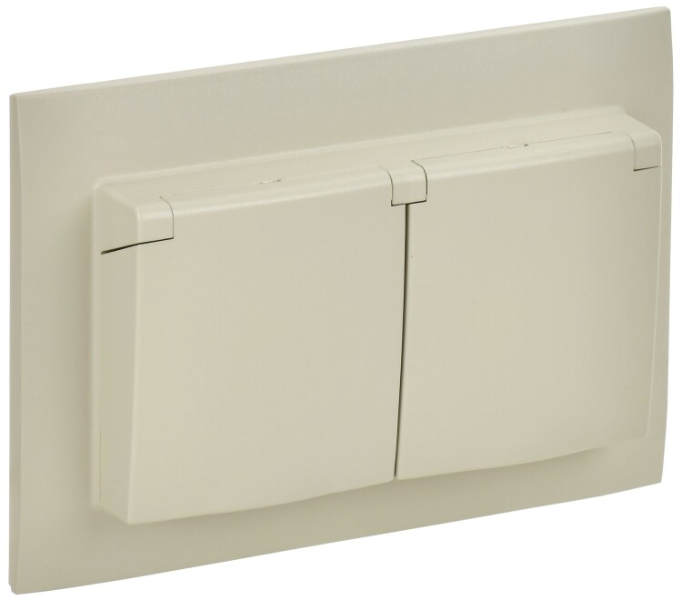 SKANDY Розетка 2-местная и крышкой 16А в сборе IP44 SK-R12B бежевый IEK