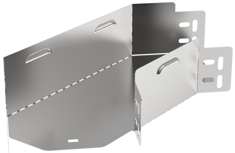 Поворот горизонтальный на 90° предназначен для организации поворота кабельной трассы в горизонтальной плоскости. Аксессуар поставляется в плоском виде, имеет направляющую перфорацию для сгиба и сборки изделия перед установкой. Стыковка аксессуара с лотком осуществляется за счёт телескопического соединителя. Подходит для всех типов листовых лотков серии ESCA. Крышка на аксессуар заказывается отдельно. Аксессуар изготовлен из стали оцинкованной методом Сендзимира (защитный слой цинка не менее 5-10 мкм).